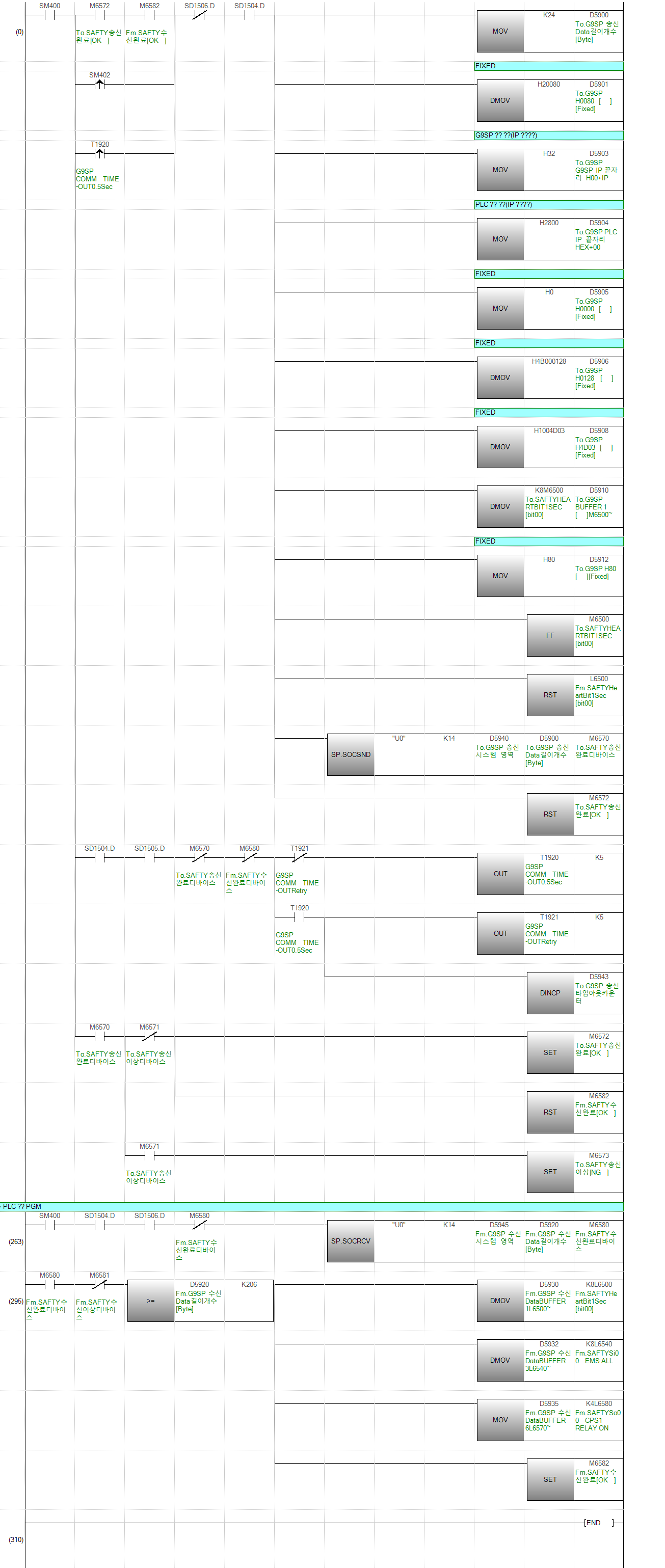 各位大神,附件是三菱IQ-R的PLC 與歐姆龍安全PLC(G9SP)通迅的一段程序,看半天沒懂啊,有能看懂的,請教了,