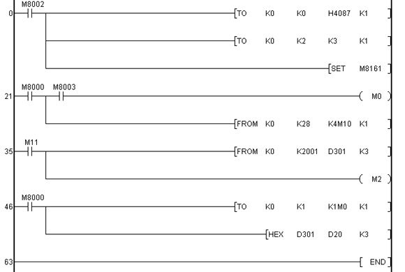 當通過FX2N-232IF與條形碼閱讀器進行通訊時的具體程序如下: