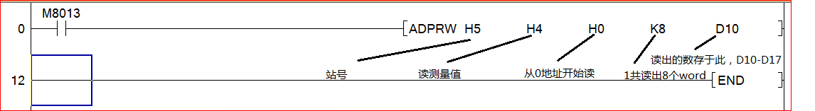 引用引用第4樓zhangqi_1234于2022-01-04 14:07發表的 :沒有正確使用ADPRW指令,仔細閱讀圖中所示的信息,再對照你編寫的ADPRW指令:[ADPRW H5 H3 H4 H0 D1500],H5表示站號,H3是功能碼,H4是什么?H0是什么?另外,每個通道存儲測量值的寄存器數量是多少個?