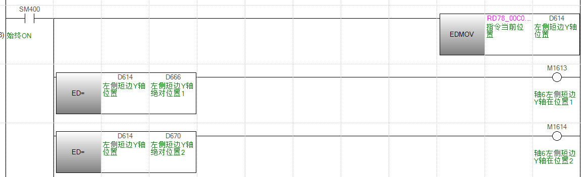 監控當前值(FX的用D8340,Q的自己定義),將當前值與設定位置值作比較,符合在一定的數值范圍內視之為某個位置。