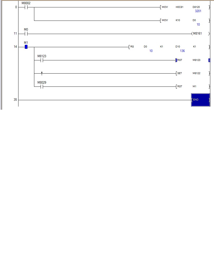 根據(jù)測(cè)試項(xiàng)目?jī)?nèi)容,定義D8120:8個(gè)數(shù)據(jù)位、無(wú)校驗(yàn)、9600bps,D8120 = 16#0C81