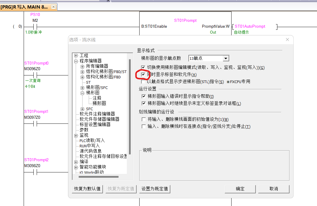 FB塊里只有標簽無法同時顯示軟元件,每次查看都要看標簽注釋很不方便,請老師幫我看下,程序見附件