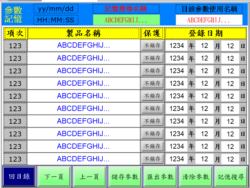現在發現還缺少些功能,如更新配方數據,冊除配方數據,查找配方數據。