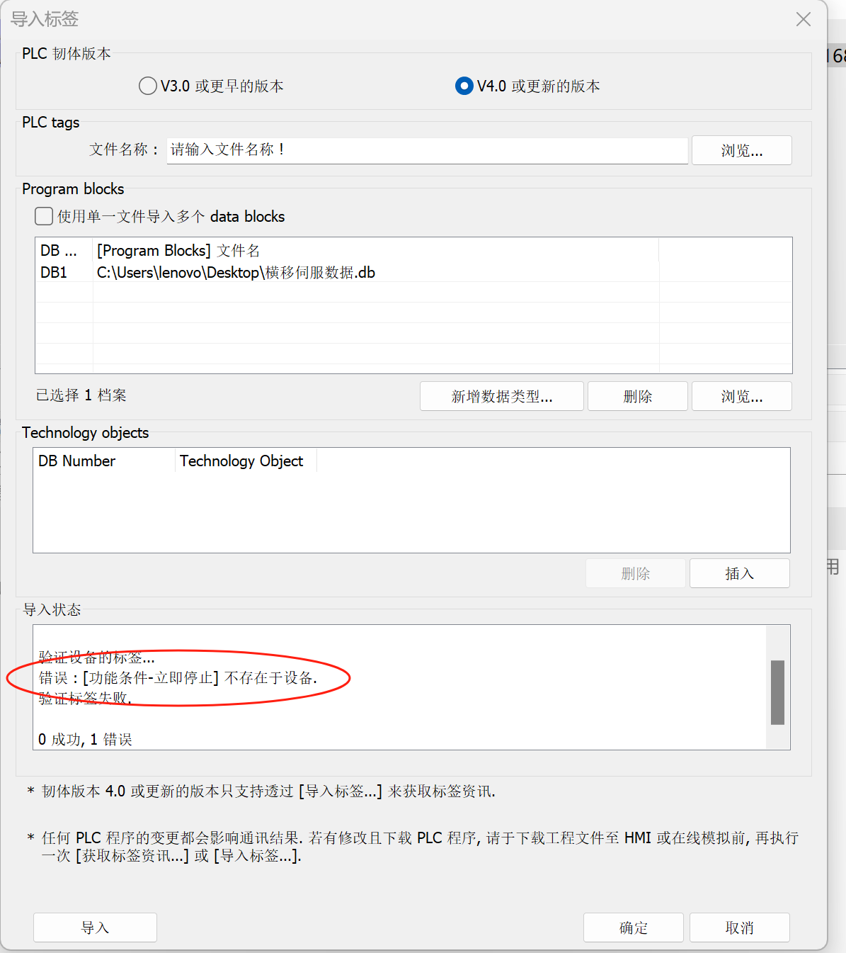 紅色框選的,導入結束提示不屬于該設備!這是怎么回事呢?初學這大家不見笑!