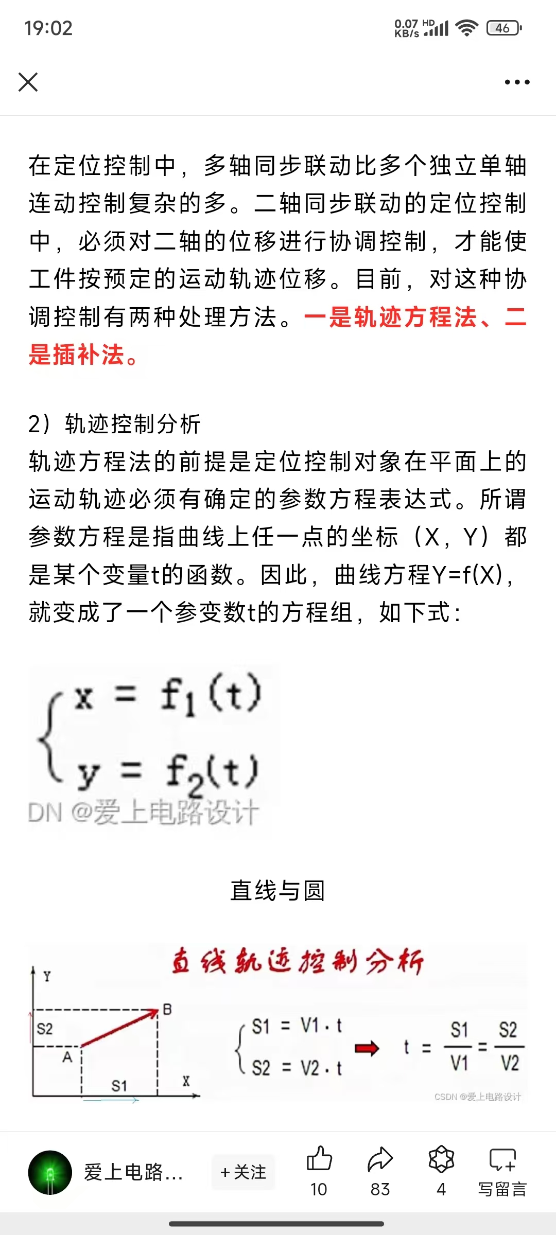 三角形就需要計(jì)算了,用直角三角形舉例:兩個(gè)直角邊就像長(zhǎng)方形一樣來(lái),分開(kāi)走位置,斜邊就需要X、Y軸同時(shí)動(dòng)作了,用2樓下面的公式計(jì)算,根據(jù)要走的距離來(lái)分別匹配X、Y軸的速度,使兩個(gè)軸到達(dá)終點(diǎn)的時(shí)間一致,其他類(lèi)型的三角形那就用三角函數(shù)計(jì)算吧,也是指定距離匹配速度...