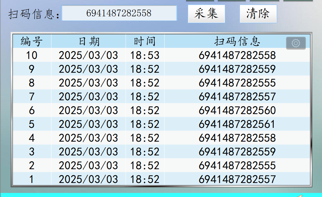 引用引用第4樓jeremyhao于2025-03-03 19:05發表的 :有沒有辦法用觸摸屏從數據庫讀數據出來,如圖列表顯示,當有新的一條掃碼信息錄入數據庫,屏幕自動覆蓋舊的信息。或者把掃碼槍部署到觸摸屏,掃描新的一條掃碼信息,點擊錄入,上傳到數據庫。有沒有大哥指導下,或者付費直接幫我弄好