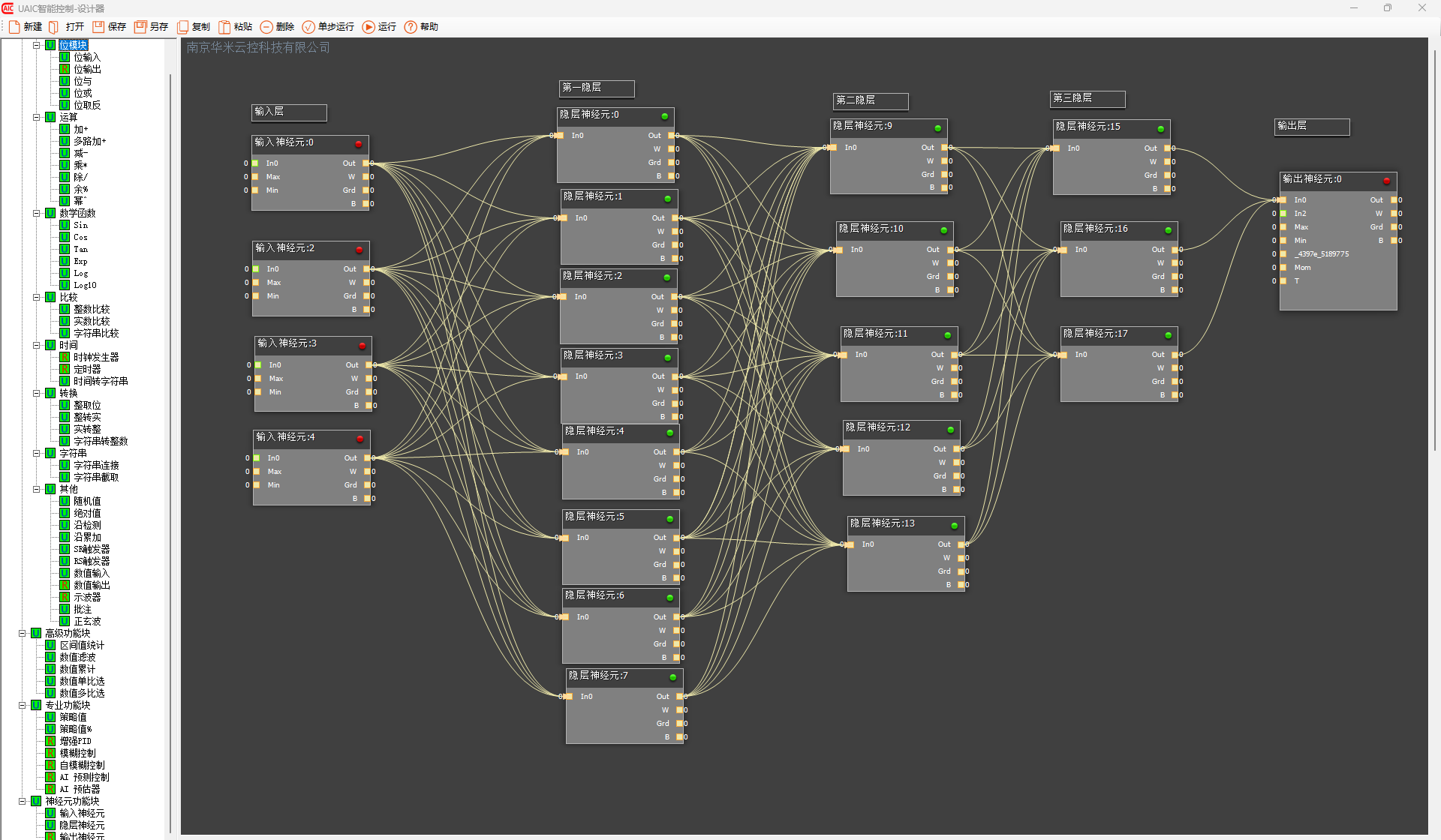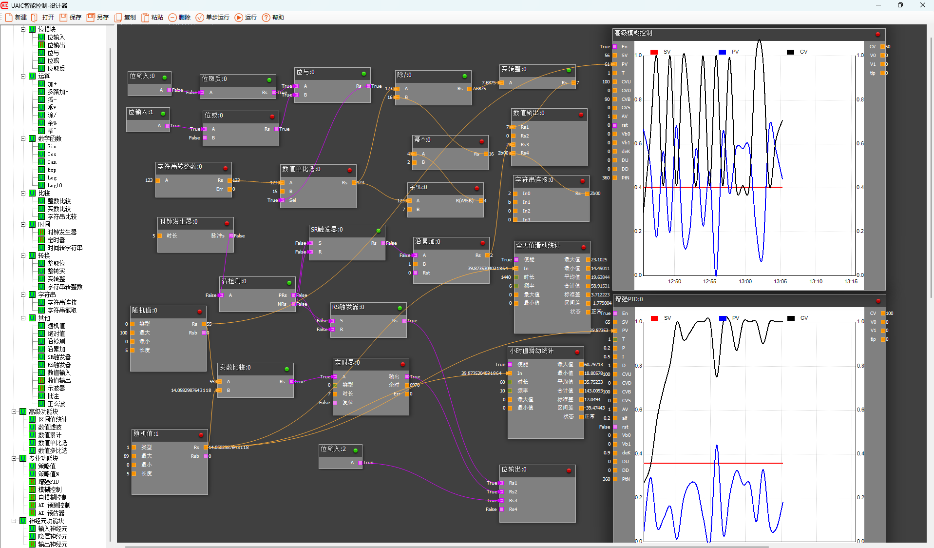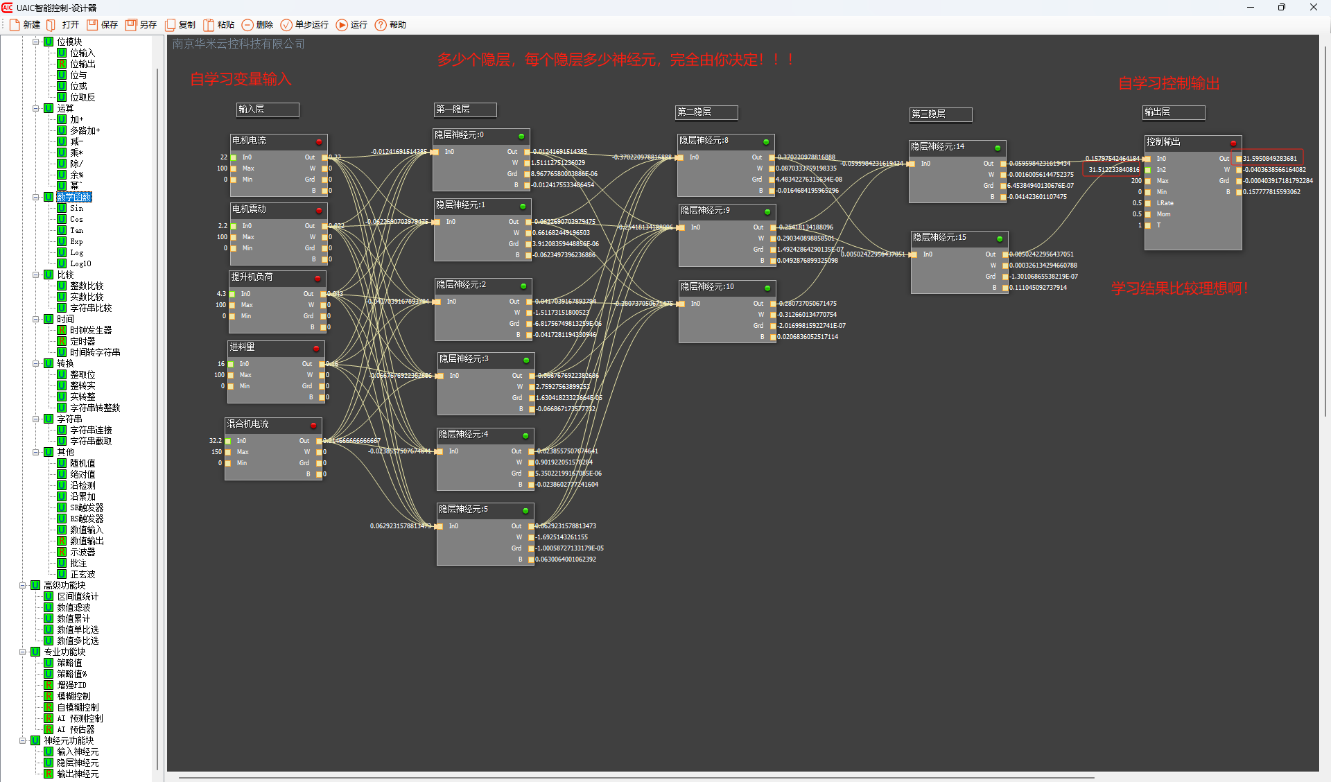 體積小, 免安裝,可以與多種PLC及DCS直接對接的 智能控制軟件,主要優點及功能如下: 1,不需要任何編程知識,PC端簡單拖拽連接即可輕松實現現工藝需求的各種控制功能,并可直接單步或循環運行仿真測試; 2,PID控制,模糊控制,自模糊控制,多參數自學習控制等,都帶有曲線圖形顯示,方便調試人員調試和優化; 3,PC端組態方便,靈活,讓控制與工藝無障礙結合; 4,PC端軟件完全綠色,體積小巧,不需要安裝,整個UAIC文件夾拷走即可組態運行,為工控人員提供了小時值計算,全天值計算,等各種快捷模塊。 5,創新的神經元網絡可視化平臺搭建功能,不僅可以手工拖拽單個神經元,根據需要搭建神經元網絡,還可以觀察每個神經元的工作狀態,讓每個神經元在肉眼可見下工作,為對神經元網絡自學習功能感興趣的工控及高校提供了方便; 6,硬件要求極低,可以直接運行在現場的HMI電腦上,也可以運行在單獨的普通電腦上; 7,UAIC集成各種數據采集驅動,OPC DA, OPC UA,S7 300/400,S7 1200/1500 S7200 smart,Modbus Tcp,Modbus Rtu,AB,MQTT 等各種驅動; 8,UAIC集成 OPC UA Server,OPC DA Server,MQTT Serer,Modbus tpc等對外開放的數據接口,以方便第三方使用; 9,UAIC與U+系列的 URPT免編程工業通用報表、UneoScada移動監控系統平臺、Ukep免編程多協議數據轉換網關、URDT工業通用數據遠傳系統,UOPC免編程工業通用云OPC,等共用統一的數據采集配置管理平臺,相關功能可以相互集成,無障礙協同工作。 我們提供的基礎版是免費,免費版本,建議大家不要把基礎版當作正式版在生產中使用 下載連接及設計及界面如下 設計界面 設計界面 運行界面 鏈接: https://pan.baidu.com/s/1R6Bemq7Rpq82puclpXm64A?pwd=ieh4 提取碼: ieh4 |