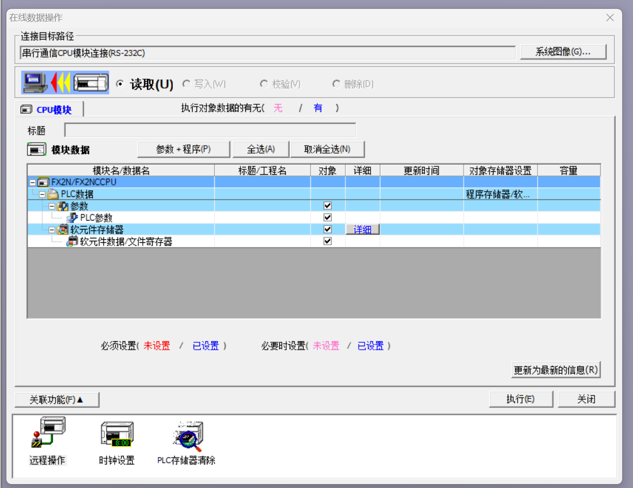 近期碰到個FX2N PLC ,讀取程序時,無程序選項,程序有加密,在我的認知中,輸入關鍵字是在讀取選項的后面,為什么這個會不顯示程序的選項呢?請高手指導下怎么處理?