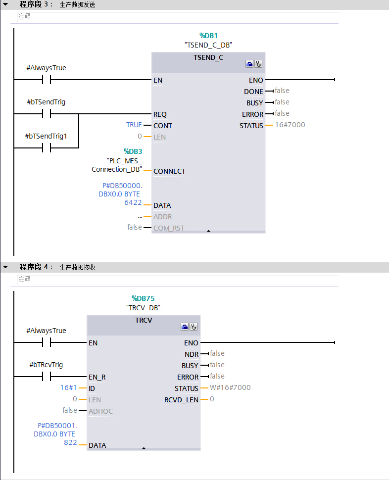 用TSEND_C建立連接和發送,接收用TRCV,固定DATA(指針地址和長度不變),可以正常收發沒問題,改變DATA地址或者LEN長度,發送給MES正常,接收到的數據會錯位2個字節,只有重置TCP連接后才正常,有沒有大佬知道試什么原因?