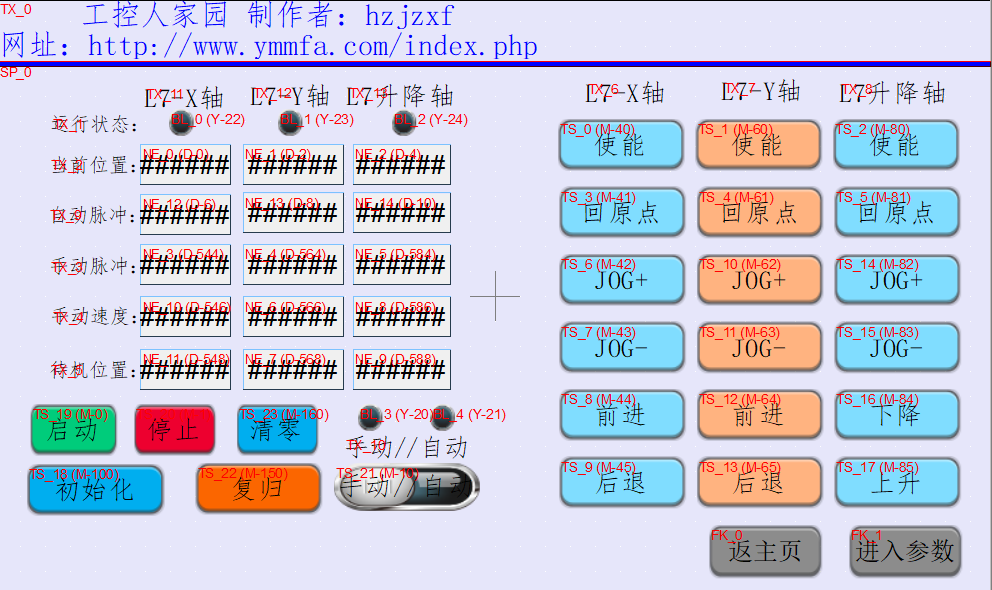 ![]() 分享一個原創三菱三軸運動控制項目 這個是我通過查找 資料視頻 結合而來 我全網查找了很多觸摸屏 感覺不夠大氣, 大氣的觸摸屏又機型對不上 于是就自己花時間 搞了一個模板 觸摸屏品牌威綸通 型號TK6071IP。 程序是三菱FX3U 主要是我只有這個觸摸屏+plc+圖紙 。 我只寫了手動程序。自動就由大家一起完成。 第一次做比較亂 不是很好。望前輩們多指導 !小輩在此感激不盡!!! [ 此帖被hzjzxf在2025-09-26 21:58重新編輯 ] |