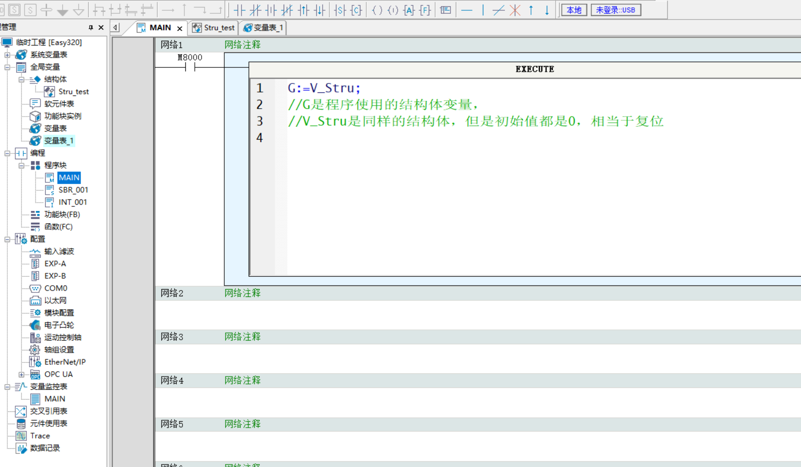 請教各位大佬,匯川EASY結(jié)構(gòu)體,比如定義了 電機(jī)1.啟動、電機(jī)2.啟動、電機(jī)3.啟動、電機(jī)4.啟動、電機(jī)5.啟動、........,類型是bool,我如果要批量復(fù)位的話,該如何寫?我用了ZRST 指令,好像不能全部復(fù)位,總不能一個一個去單獨復(fù)位吧?