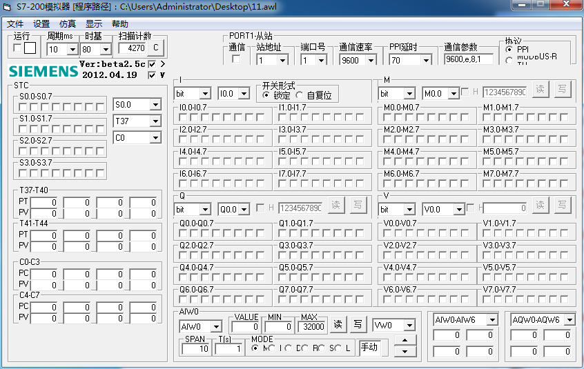 發個通用的新版模擬器,功能非常強大,里面有說明書。可以模擬幾乎plc的所有功能,包括模擬量和通信