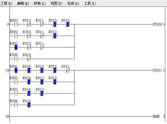 各位大蝦:幫個忙!下面的梯形圖怎樣寫,且盡可能用功能指令.謝謝!!!