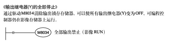 三菱的FX2N 誰(shuí)能講講M8034的用法 我用SFC做了個(gè)小程序 希望能用M8034作為急停 可為什么運(yùn)行M8034后 實(shí)際PLC上沒(méi)有輸出(PLC上燈沒(méi)亮 也就是繼電器沒(méi)吸和) 但是GX Developer上監(jiān)視是卻看到有輸出....這是什么原因 M8034不是禁止輸出的么