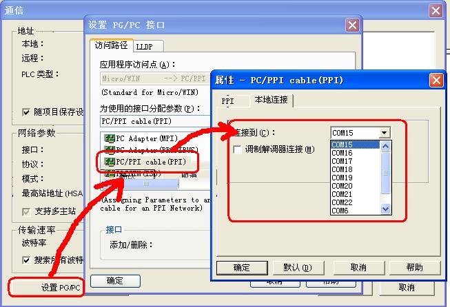 我用的電纜是ppi電纜,串口的,軟件設置里面怎么修改com口地址,我在通信設置選項里面沒有看到修改Com口呢?謝謝!