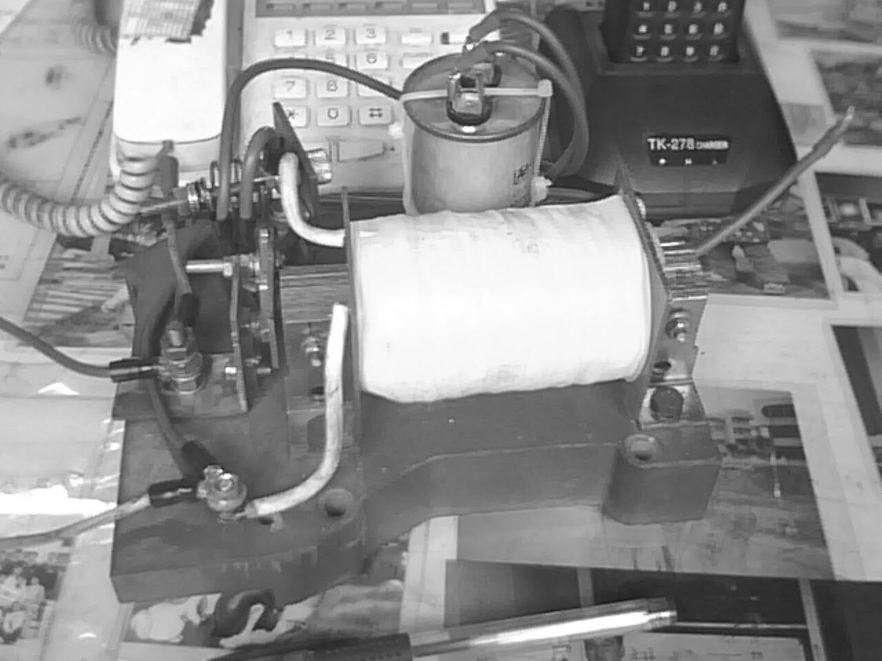 呵呵,就是拿300va的變壓器拆的I片做的鐵心,60A的交流接觸器觸電做的接觸白金點,其余的都是破銅爛鐵。