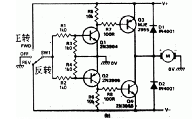 因為電機的電流直接通過開關,容易燒壞開關接點。所以可以改用功率開關晶體管來代替機械開關,就可以克服上述缺點。