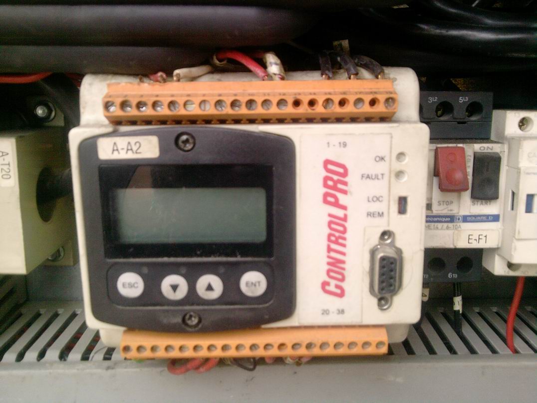 電機控制保護器吧!看一看有故障指示燈等!