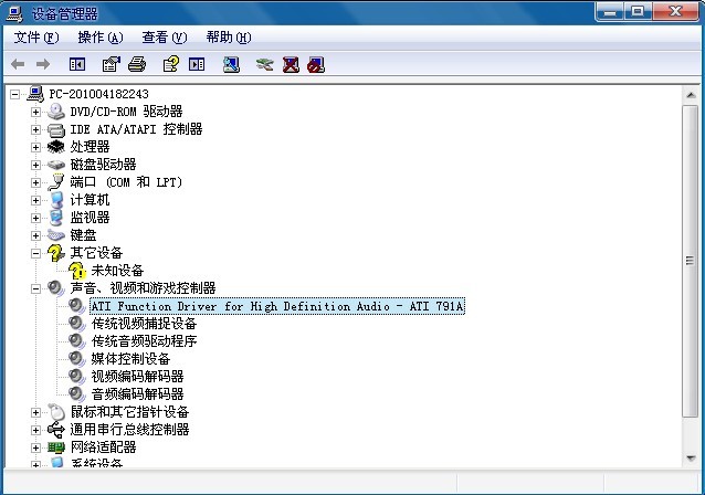 在我的電腦中右鍵屬性進入設備管理器,查看聲音及視頻項再掃描新設備,顯示AC~97項或是其他軟件(未安裝成功會顯示問號),再插入聲音驅動安裝盤。點擊更新驅動,選擇安裝程序位置,點安裝即可!部分如圖所示。。