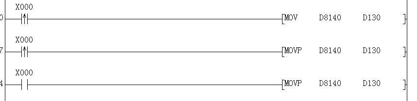 三條指令一樣的效果,都是X0上升沿時將D8140的值傳送到D130。