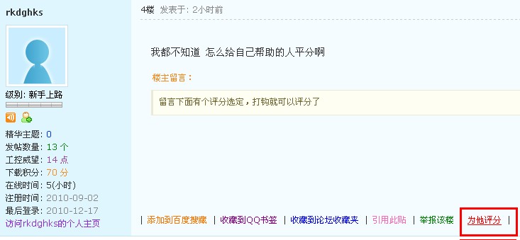 工控人家園中,評分不扣分,我看到好多人提問后,別人幫解決了,都不給評分,我覺得不厚道。