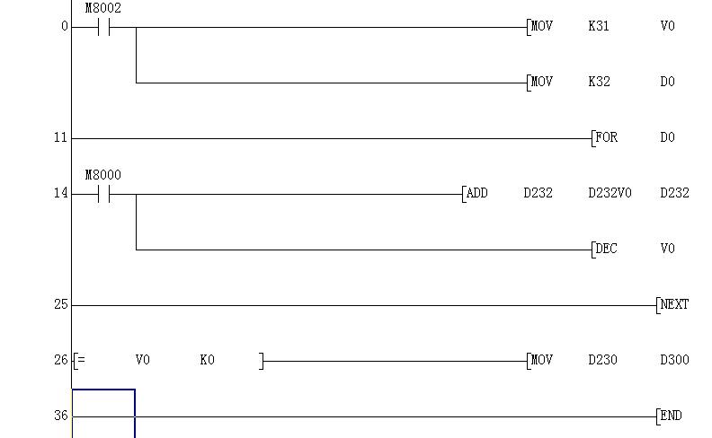 樓上的朋友,我照你的程序來模擬好象不是那么回事啊?這樣把,你幫我把這樣的要求的程序編出來:D200加D201加D202加D203......加D232,把它們的數值累加起來,傳到D300里面,看下你是怎么弄的,謝謝你在這里指點我