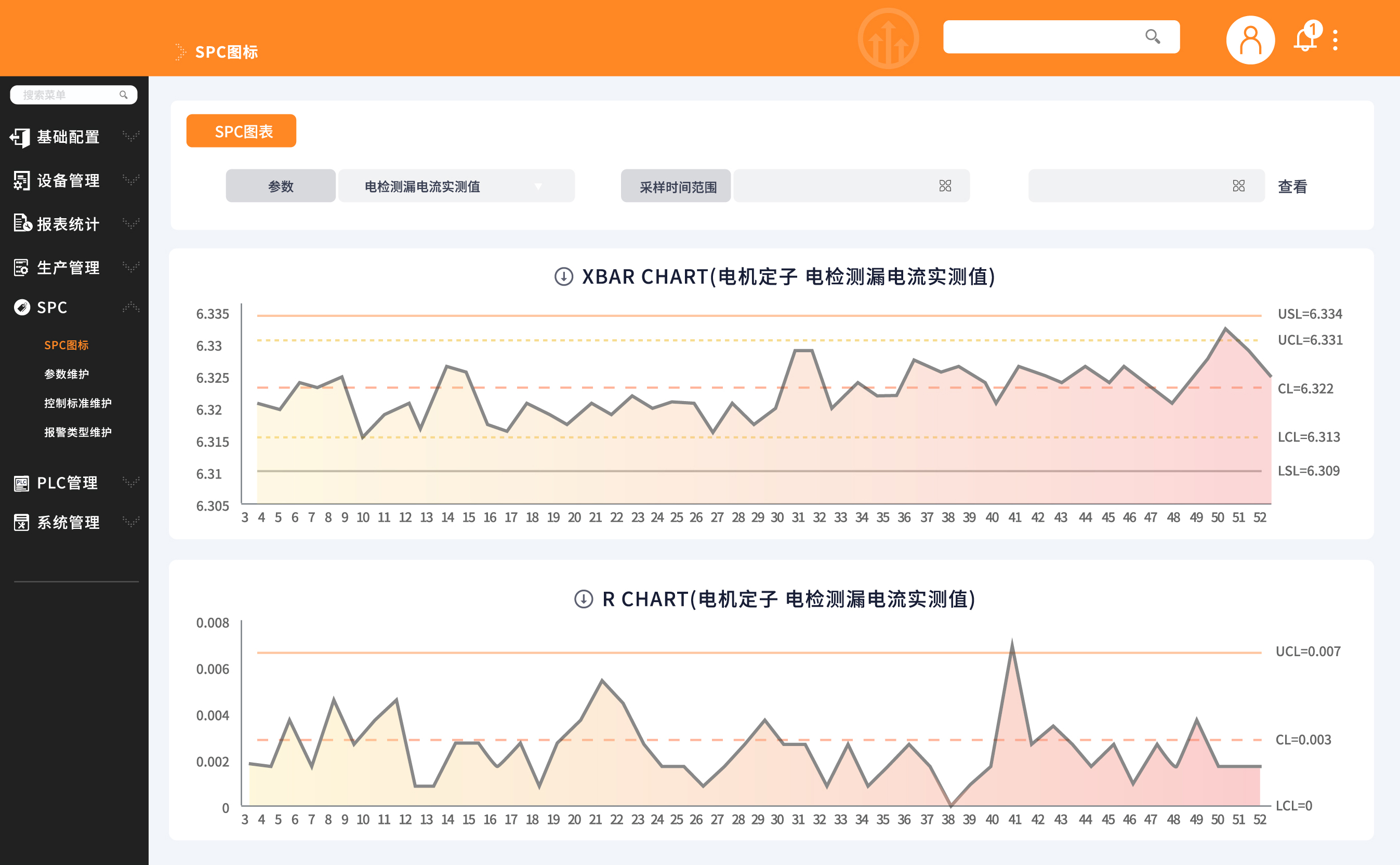 在平臺中設定相關質量檢測標準后,平臺對定子生產過程中的電檢、綜合檢測數據等過程質量數據進行采集,并提供SPC等強大的分析能力,提升產線過程質量管理水平和能力。相關質量數據可提供長期數據分析,對生產過程質量管理人員快速定位質量缺陷和找出質量改進措施提供數據決策支持。
