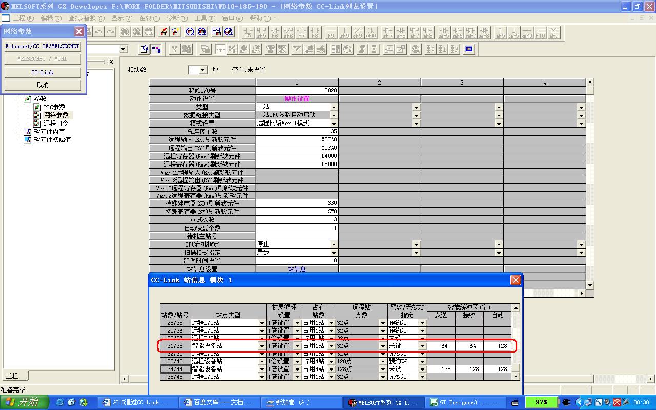 有哪位高手能指教一下GT15用過CC-Link與Q02h通信該怎么設置呀?有沒有實例可以共享一下呀?或者發(fā)一個設置步驟把,盡量詳細點?774786582@qq.com,小弟在此謝過了。很急呀。