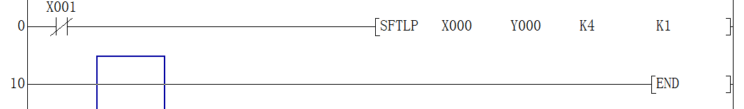 因為你的SFTL指令的執行條件為常閉觸點,且你的SFTL指令為脈沖指令,因此它僅在X001接通時執行1個掃描周期。