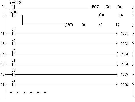 用計數器記取X0的次數,將計數器除8取得商和余數。