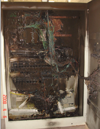 這個問題是我最關心的,我想問一下,大部份器件均為施奈德牌,據(jù)我的經(jīng)驗,施奈德的接觸器和斷路器是比較質量好的,但從燒毀的痕跡看,在發(fā)生短路時分斷路器并沒脫開,才導致從短路點到分線銅排的電線發(fā)熱絕緣損壞而引起分線銅排短路的嚴重后果,可有總斷路器為什么還沒起到保護作用呢,就算質量有問題,為什么幾級保護都沒起到作用呢,在這中間難免讓人沒有合理的解釋。