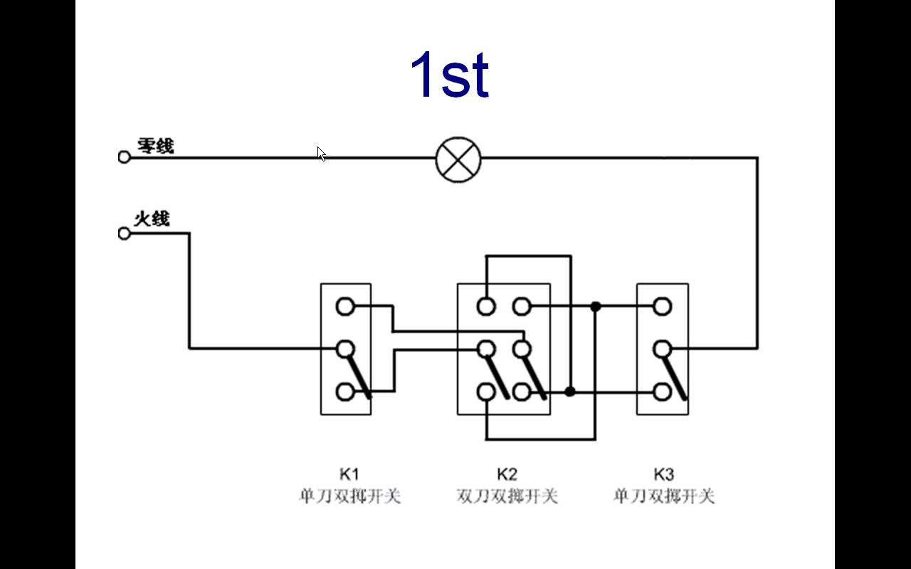 上圖是三地控制一盞燈 的電路,如果要將邏輯用梯形圖來表達,因為有橋接電路,不能直接用梯形圖畫出來,需要按照“從上到下,從左到右”的原則將每種邏輯(支路)畫出來: