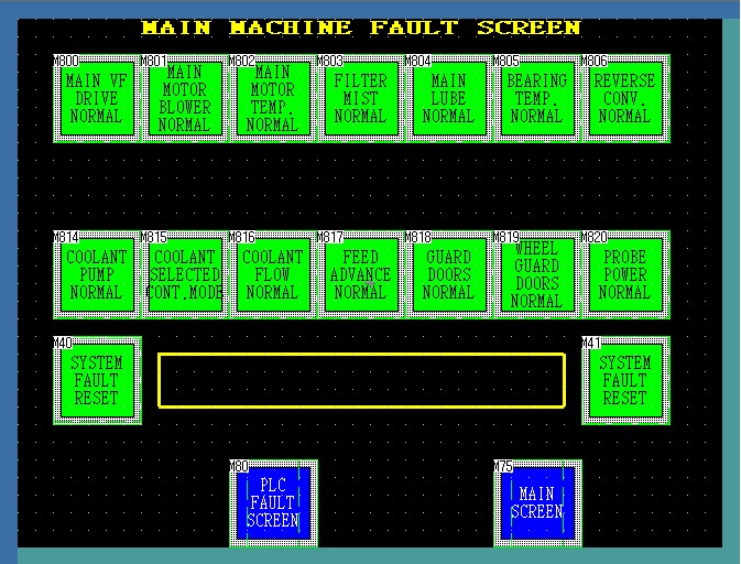 要求圖中的左右兩個SYSTEM FAULT RESET 按鈕同時按下來配合PLC做出復位。