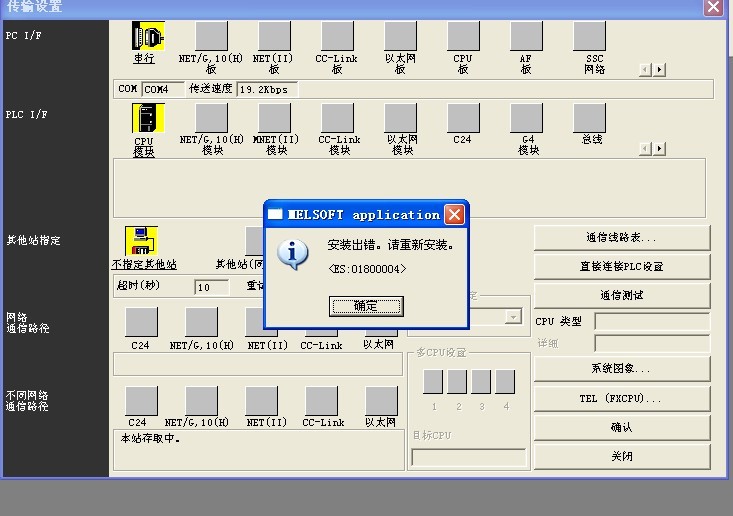 大家好,請問下,三菱FX系列PLC與電腦通訊,軟件是GX 8.0,通訊總是失敗,失敗畫面如下面附件圖片所示。