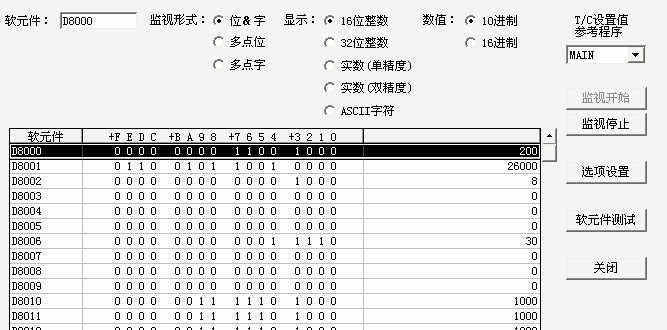 首先,把PLC連接好,然后轉(zhuǎn)到 監(jiān)視模式 ;在監(jiān)視模式后   在線—監(jiān)視—軟元件批量 彈出上面對話框,最后在軟元件輸入D8001 單擊  監(jiān)視開始  按鈕就可以啦