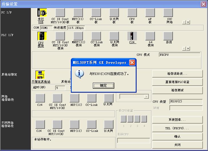 昨天在一家五金廠調試程序,發現電腦與PLC老是不能通訊,在傳輸設置里面點擊通訊測試按鈕顯示通訊成功,如下圖: