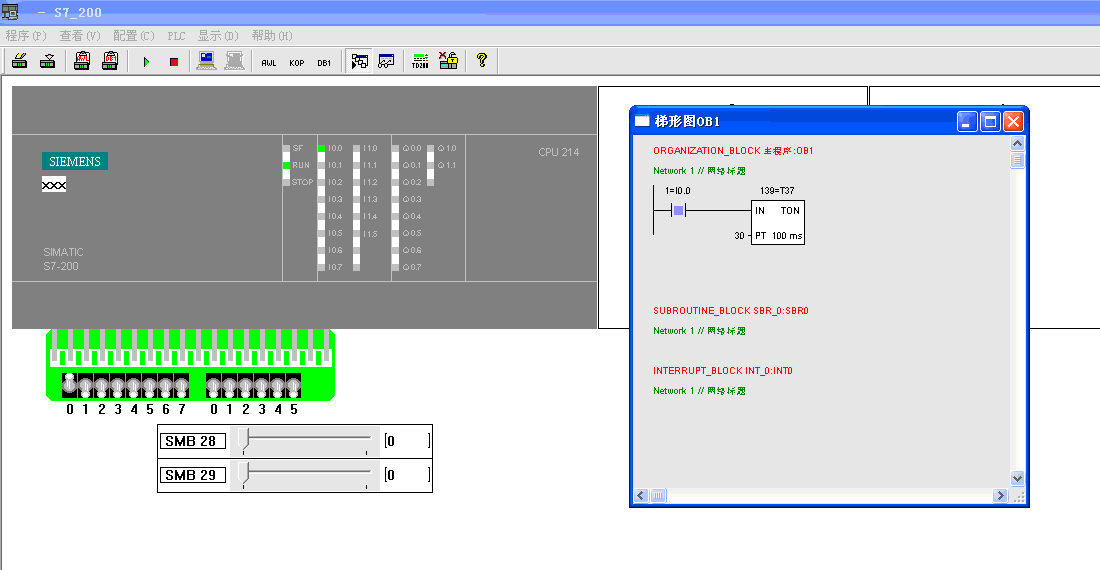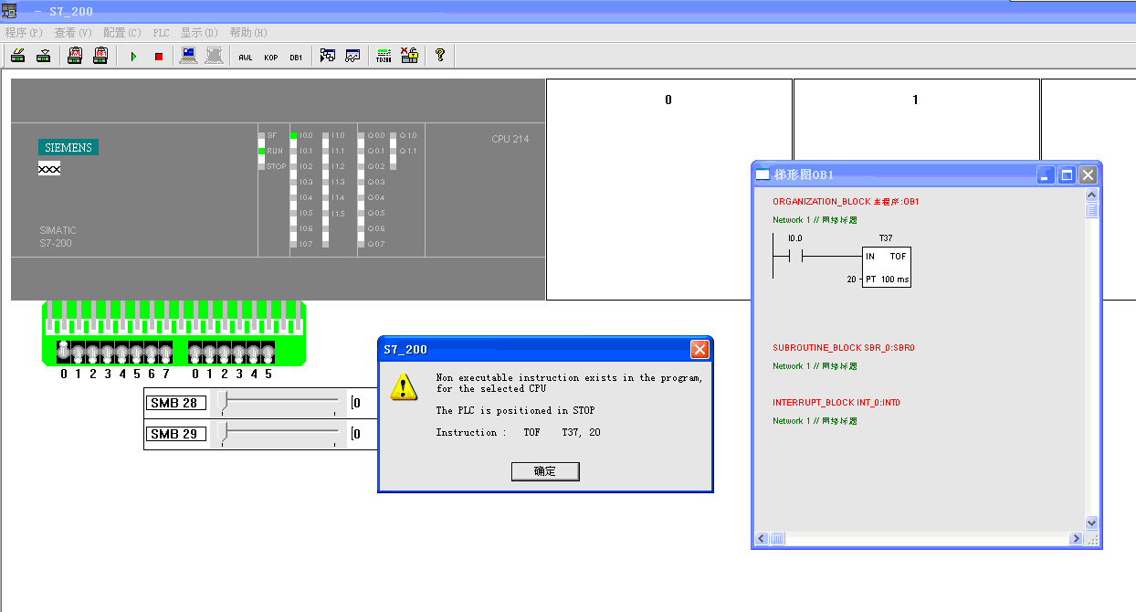 梯形圖一樣,只是將定時器由TON改成了TOF,仿真就行不通了,出現如下圖的畫面