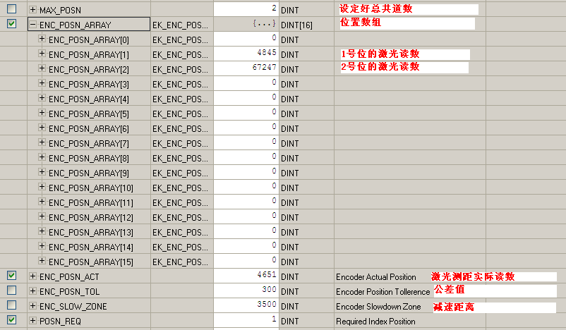 7位置移行機,用激光測距控制停止減速位置。掛在dnet總線上