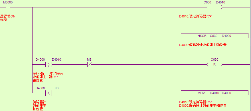 第一段程序計算角度的 本意是:D4010設定為180,計數器小于0時從180開始,向下計數,大于180時計數器復位從0開始,現在大于180的時候能從0開始計數,但是,小于0 的時間卻不能從180開始,即便是將最后一行修改改成D 4010也沒成功