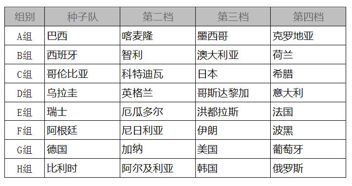2014世界杯分組一覽
