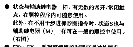 S為狀態繼電器,如果在步程序中使用即為步繼電器使用。 如果不在步程序中使用可以做為一般的內部繼電器使用。 ![]() |