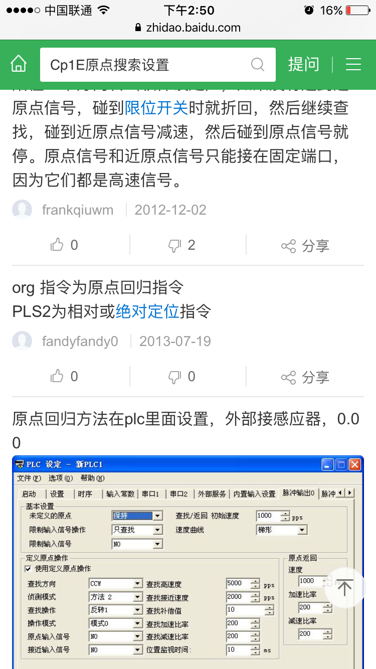 CP1E 系列的脈衝輸出0 原點輸入/近旁輸入位置  為0.06 /0.10  不是0.00