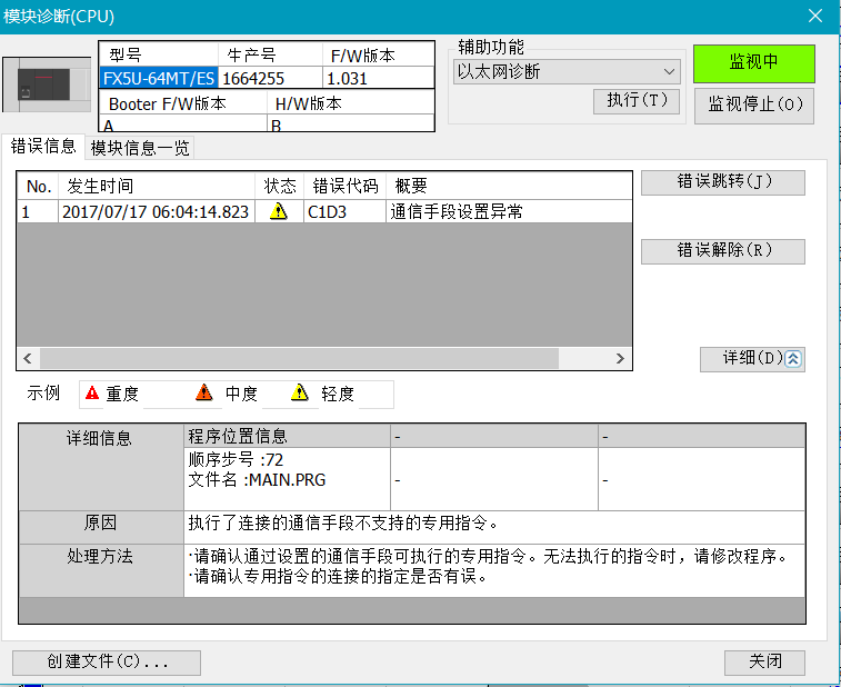 根據通訊手冊做的程序,發送時報警,err顯示        C1D3    通信手段設置異常