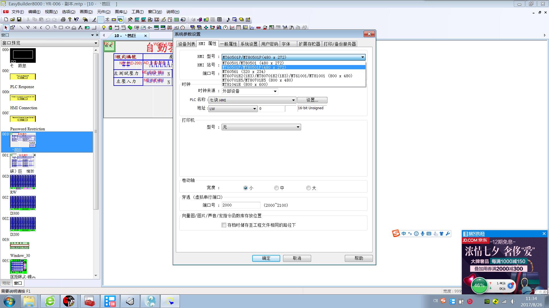 使用EB8000將MTP格式程序文件下載至型號為TK6050ip的人機后,報警信息為“Incompatible project settings!Please change the HMI model and download again”,我想應該是人機的信號在系統參數設置里選錯了,但是打開系統參數HMI屬性里,找不到我要的型號,什么問題?各位賜教