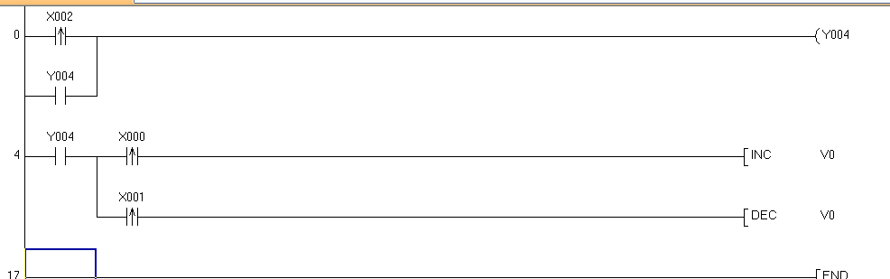例如:輸出點這樣用 Y0V0  然后你的X0 X1分別對V0進行減1和加1操作 V0和寄存器用法是一樣的 只是這個是變址寄存器而已