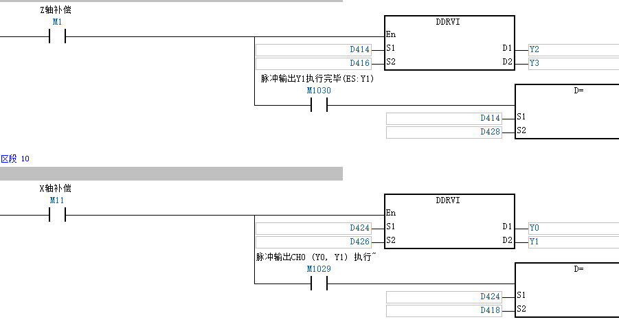 以前用EH3做私服控制的比較多,最近用了一臺ES2的做兩個私服定位控制,用絕對定位,編程方法和用EH3的一樣,現在出現問題是,不能連續運動兩個位置,運動完一次就停了,官網找一份詳細的ES2編程手冊都找不到,DVP系列通用手冊,又沒提到ES2的部分。上傳程序,希望用臺達的朋友可以答疑解惑。