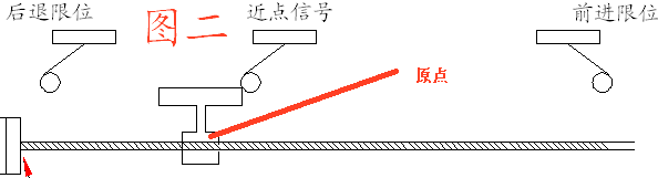 但是如果伺服上電時(shí)回原點(diǎn)方向定為后退方向,當(dāng)碰后退限位后再改變方向,即向前進(jìn)方向前行,找近點(diǎn)信號(hào),在近點(diǎn)信號(hào)由ON變OFF時(shí)伺服電機(jī)停止,此時(shí)的位置也應(yīng)該為所要找的原點(diǎn),即使用ZRN原點(diǎn)回歸命令時(shí)的方向?yàn)榍斑M(jìn)方向,而圖二所示時(shí)原點(diǎn)回歸命令的方向?yàn)楹笸朔较?如圖三所示,我的意思為:如果伺服電機(jī)用原點(diǎn)回歸命令ZRN時(shí)方向不同,則最后所找的原點(diǎn)是否也不同,正如圖二圖三所示,不知分析是否正確,