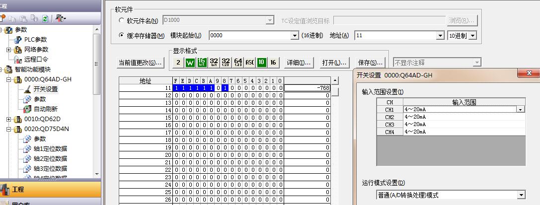 ![]() 智能功能模塊讀取數值一直不變,參數,接線 檢查好幾次了 都沒發現錯誤,緩存地址當前值 一直是 -768. |