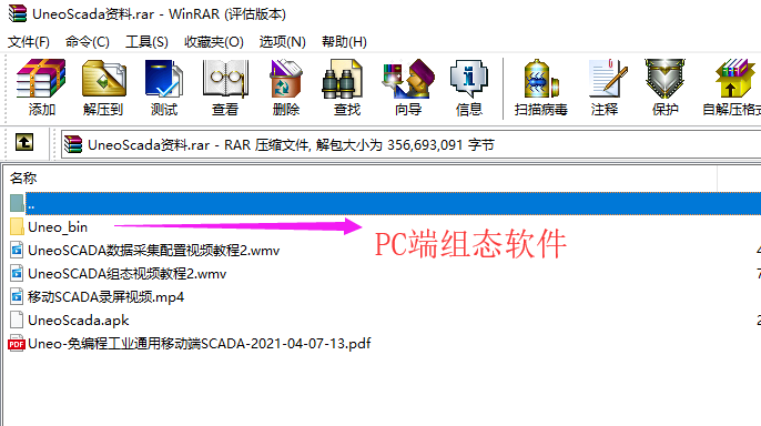 2,Uneo SCADA 完全綠色,不需要安裝,整個 Uneo 文件夾拷走即可運行;