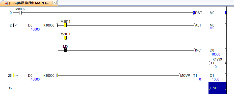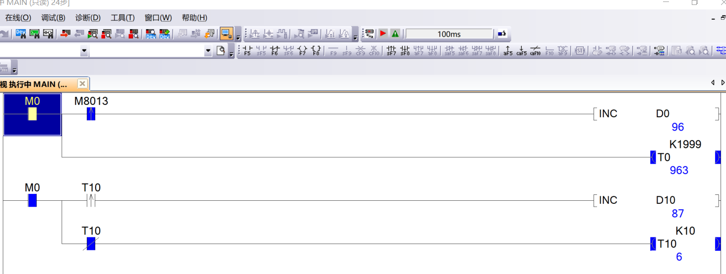 你的信捷的,你要看你的掃描周期,而且你的時間繼電器是10ms,你應該是直接上傳plc運行,掃描周期應該只有幾us。 我的用的是三菱離線模擬,你仔細看我發的圖,掃描周期是100ms,所以,你懂得 ![]() |
